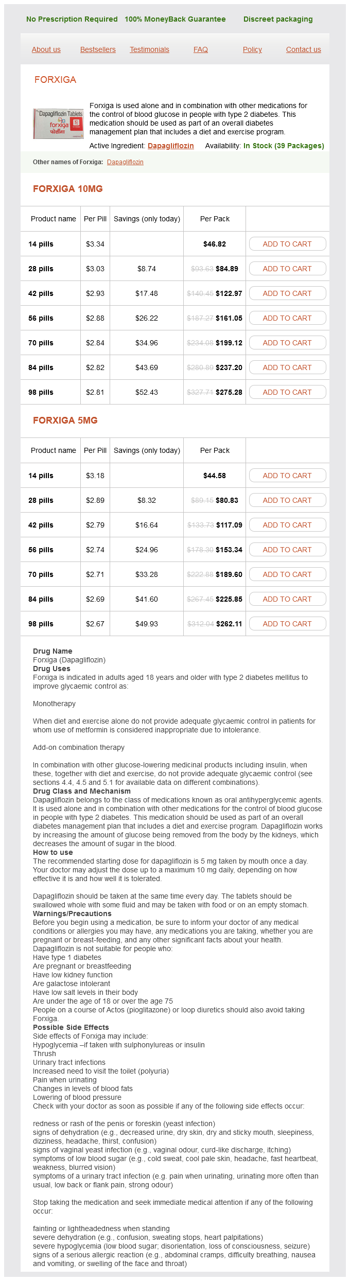 Dapagliflozin Dosage and Price