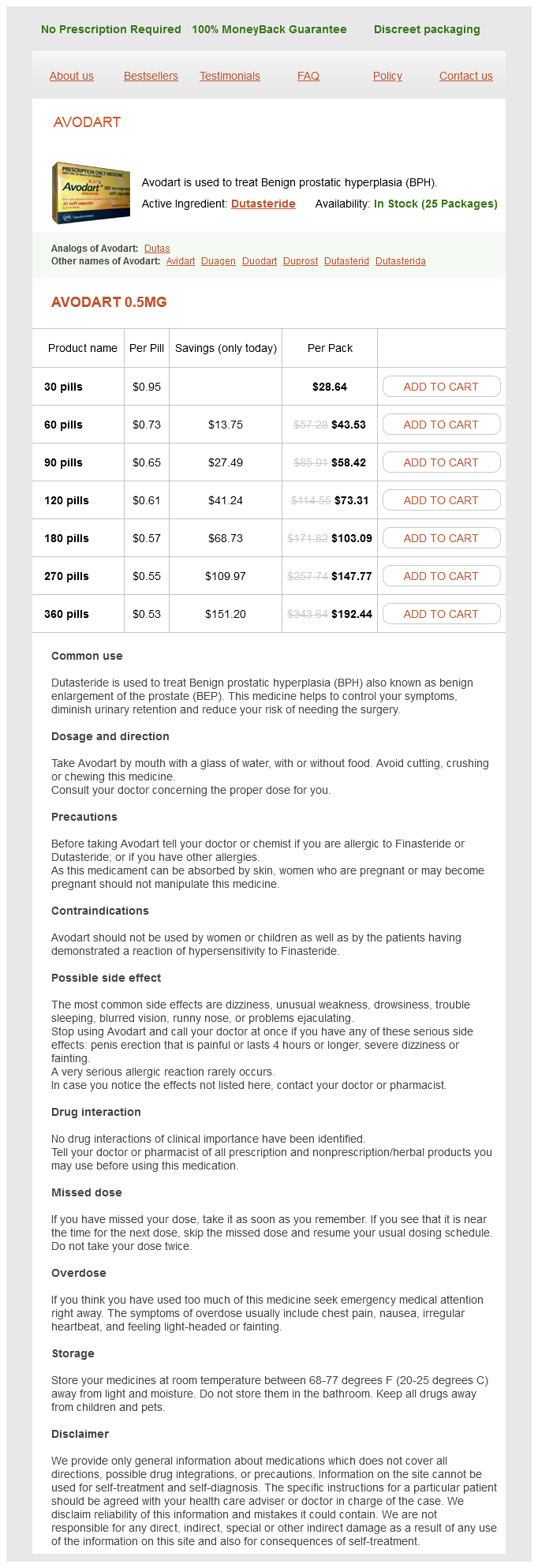 Dutasteride, also identified by its model name Avodart, is a drugs used for the therapy of Benign Prostatic Hyperplasia (BPH). BPH is a situation during which the prostate gland turns into enlarged, causing urinary symptoms such as frequent or troublesome urination. Dutasteride works by inhibiting the conversion of testosterone to dihydrotestosterone (DHT), a hormone that's answerable for prostate development.
