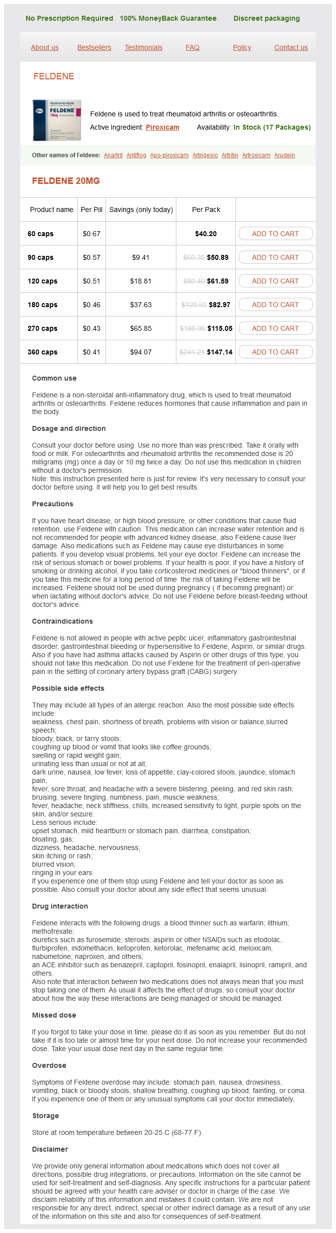 Feldene Dosage and Price