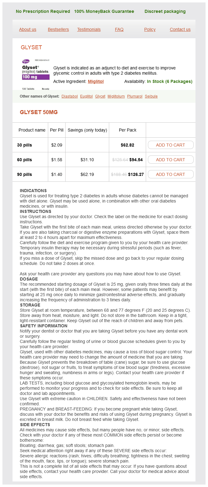 In addition to its effectiveness in controlling blood sugar levels, Glyset also has an excellent security profile. It has been in the marketplace for over 20 years and has been studied in quite a few medical trials. It has additionally been shown to be secure for use in combination with different diabetes drugs, making it a flexible treatment possibility.