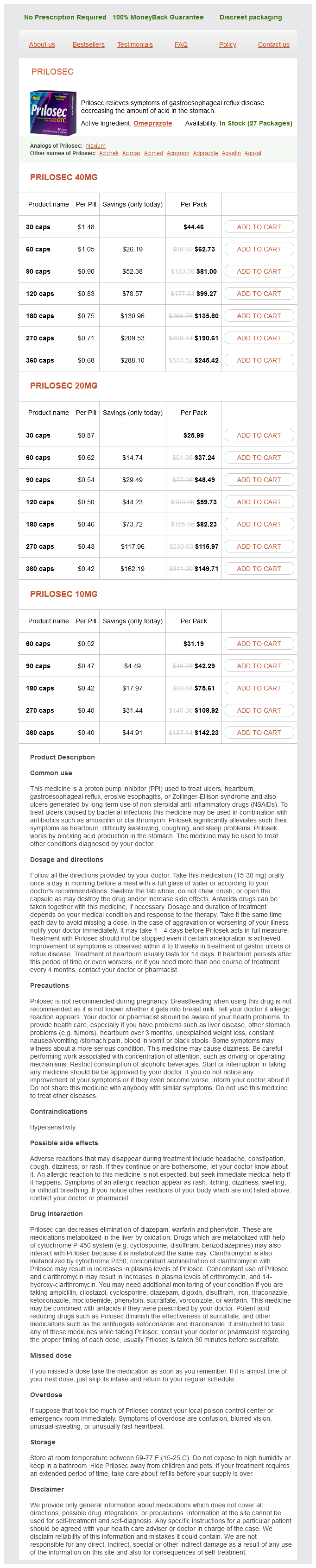 The prescription model of Prilosec is out there in numerous strengths and forms, together with capsules and powder type for oral suspension. The dosage and duration of therapy will rely upon the situation being treated and the individual's response to the medication.