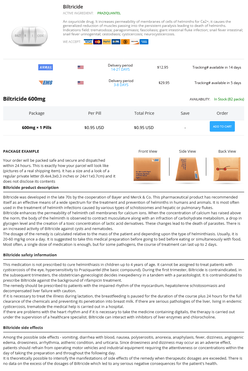 Snail fever, also referred to as schistosomiasis, is another condition that might be effectively handled with praziquantel. This infection is brought on by snails and might lead to a range of signs, together with fever, abdominal pain, and blood in the urine. Praziquantel is also used to deal with urinary and intestinal schistosomiasis, that are brought on by a special type of parasitic worm.