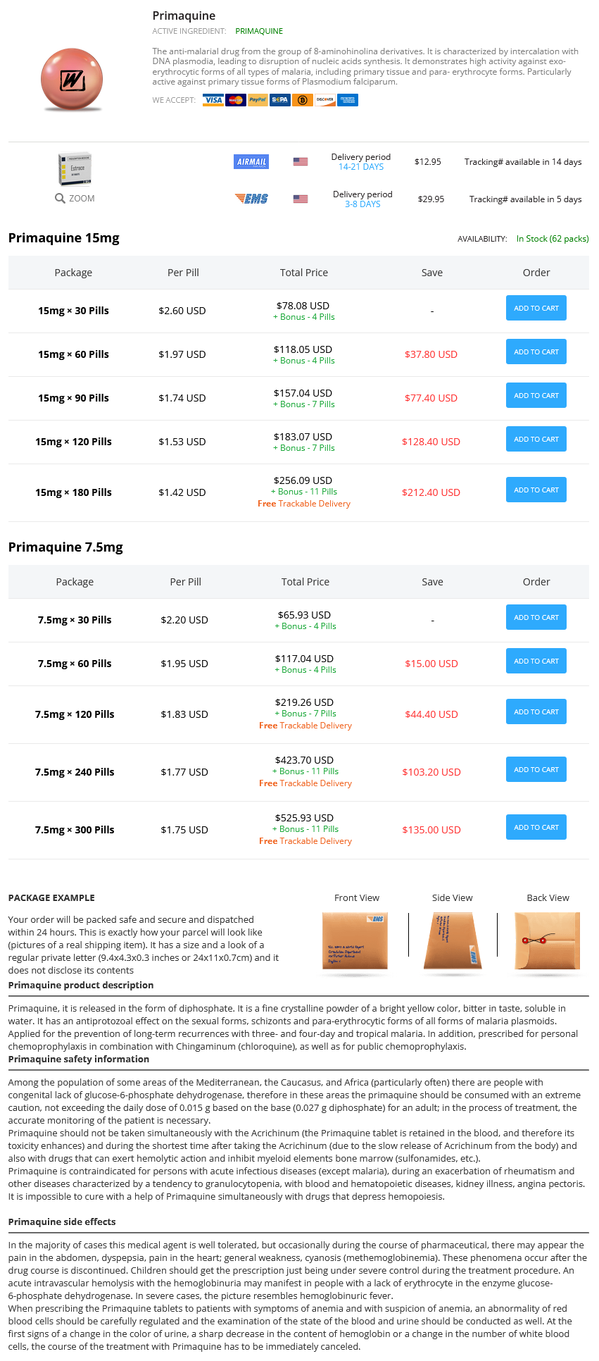 Primaquine Dosage and Price