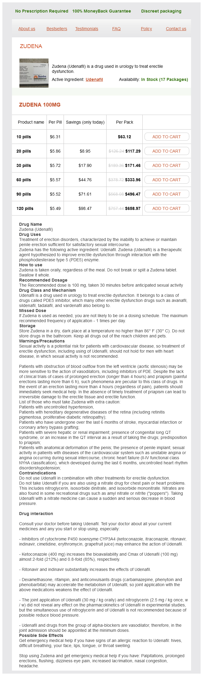 Zudena is out there in pill type, with a really helpful starting dose of 100mg, to be taken approximately 30 minutes earlier than sexual activity. Dosage adjustments could additionally be needed primarily based on a person's response and tolerance to the drug. It is crucial to notice that udenafil doesn't trigger spontaneous erections; sexual stimulation continues to be needed for the medicine to be effective.