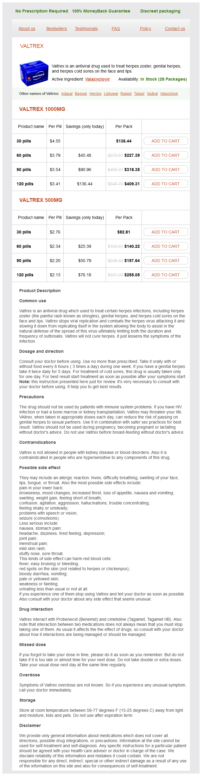 Valtrex Dosage and Price