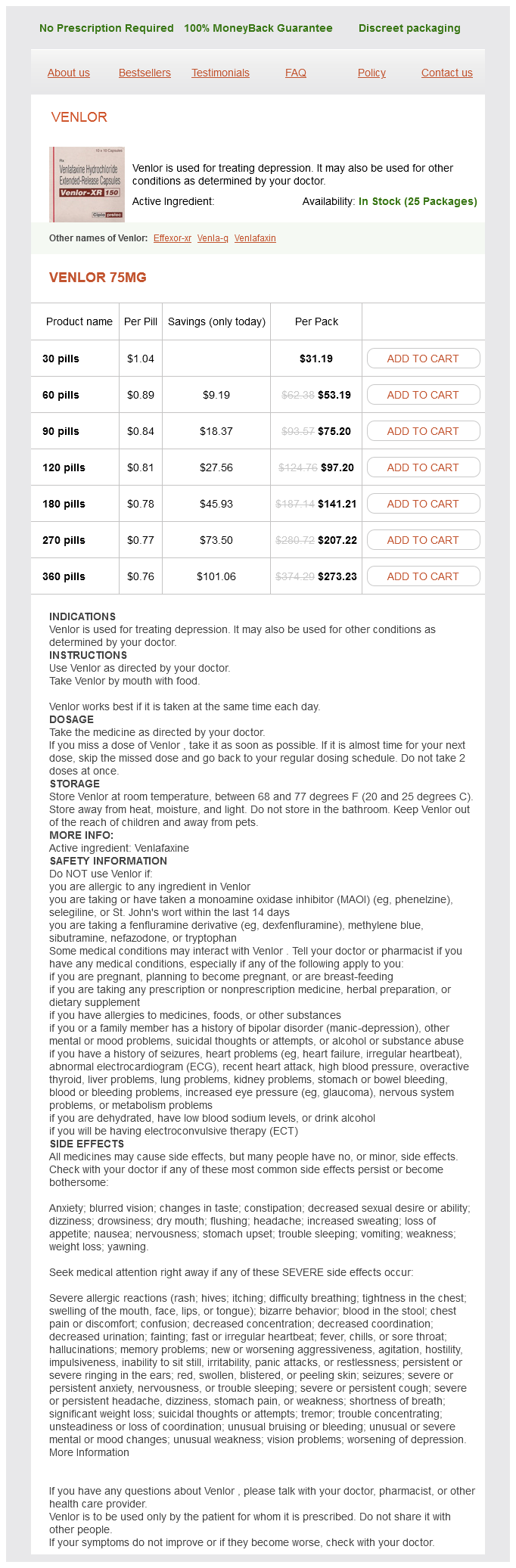 Venlor Dosage and Price