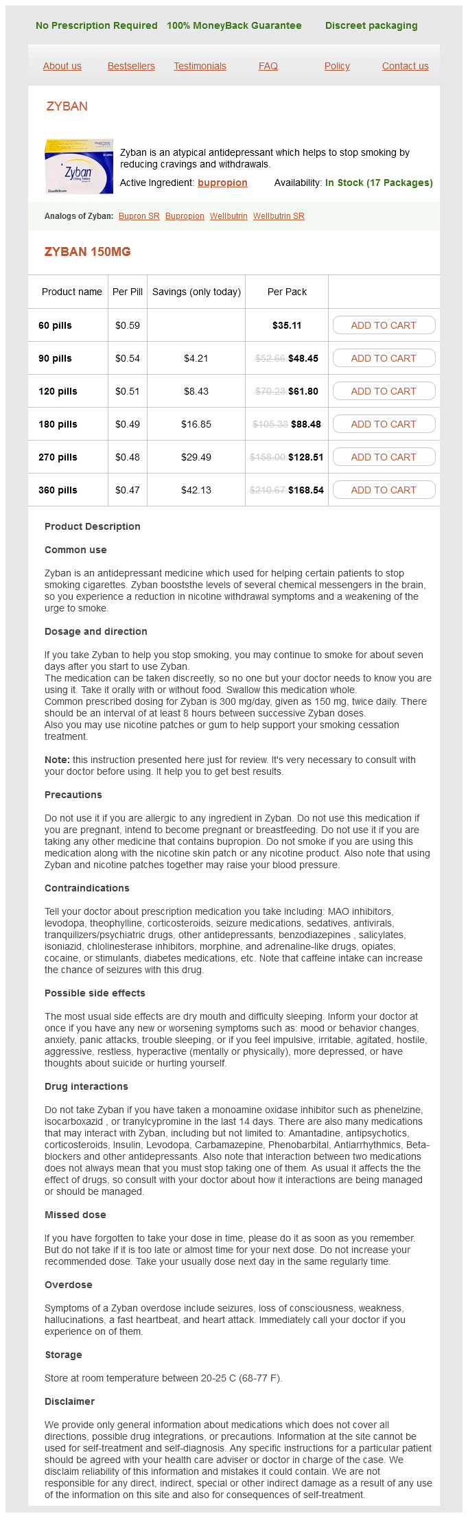 Zyban Dosage and Price